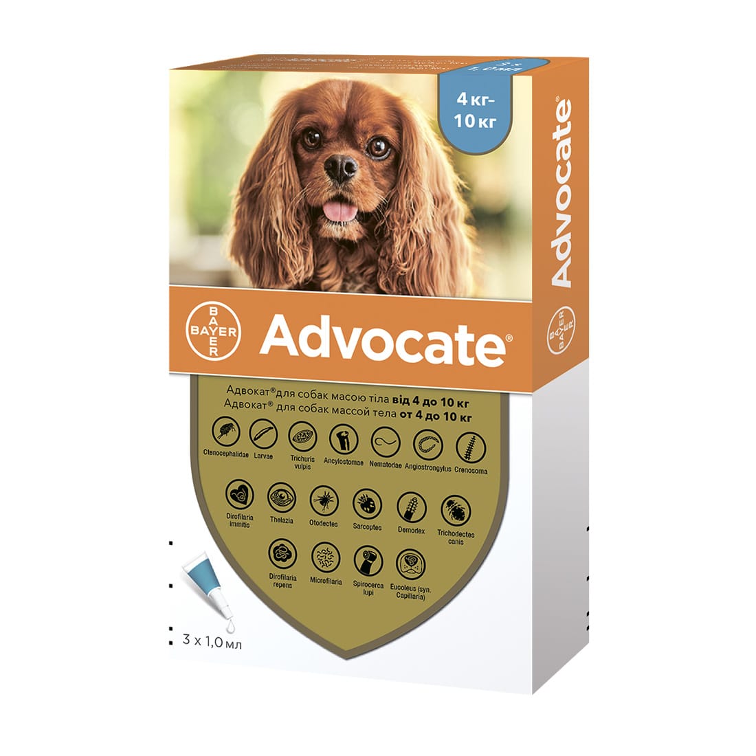 Краплі протипаразитні Elanco Адвокат для собак, від 4 до 10 кг, 3 піпетки