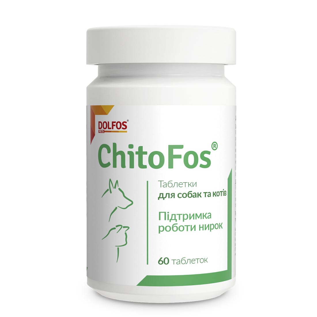 Dolfos ChitoFos – дієтична добавка для собак та котів, створена для підтримки функції нирок у випадках хронічної ниркової недостатності. Вона містить хітозан для видалення уремічних токсинів та аміаку з крові, карбонат кальцію для регулювання рівнів фосфору та вітамін D3 для підтримки оптимальних концентрацій у тілі. Рекомендується при неінфекційній хронічній нирковій недостатності для досягнення тривалих періодів ремісії.