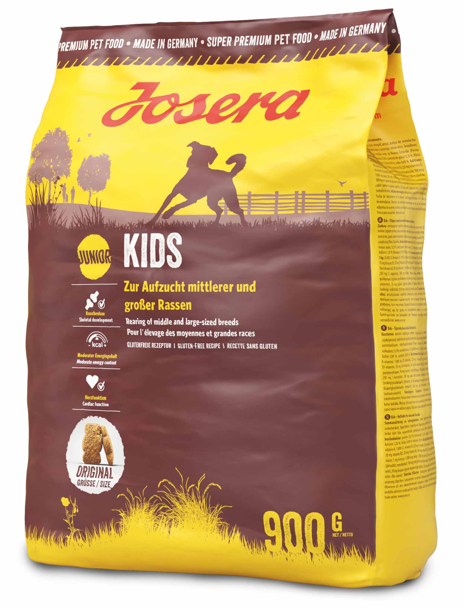 JOSERA Kids для наших молодих героїв, які рвуться вгору: спеціальний корм для вирощування собак середніх та великих порід. Рецептура зниженої калорійності з узгодженим вмістом протеїну та жиру підтримує помірну швидкість росту, міцний кістяк та здорові суглоби.