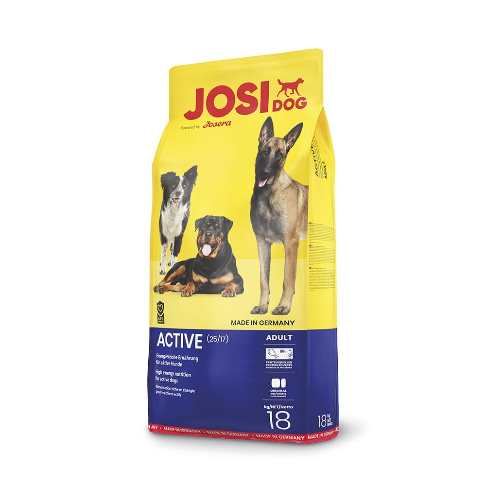 Корм для собак JOSERA JosiDog Active високоенергетичний корм для активних дорослих собак. Поживна безглютенова рецептура забезпечує достатню кількість енергії для дуже активних та спортивних собак.