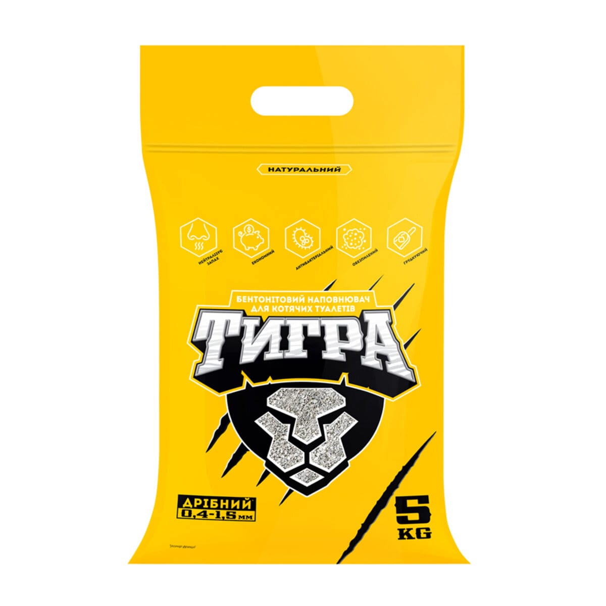 Бентонітовий наповнювач для котячих туалетів Тигра, 5 кг, гранула міні 0,4-1,5 мм, жовтий